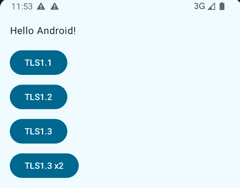 The app only performs requests using TLS1.1, TLS1.2, and TLS1.3, and uses the okhttp3 library.